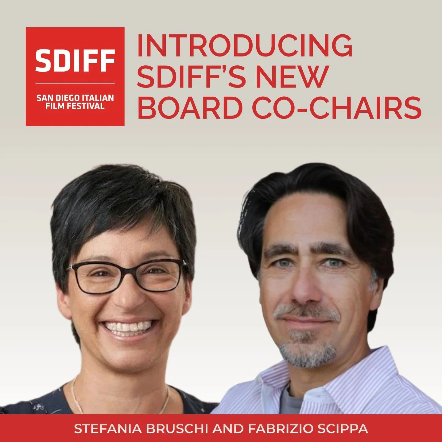 As SDIFF looks ahead to its 20th anniversary in 2026, the Festival is pleased to announce Stefania Bruschi and Fabrizio Scippa as its new Board Co-Chairs, stepping into shared leadership to guide the organization into its next chapter.